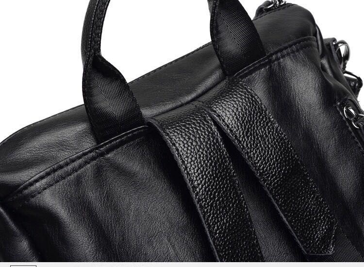 Plecak jest gładki, połyskujący. Ozdobę natomiast stanowią dwa zamki umieszczone na zewnętrznej stronie.
