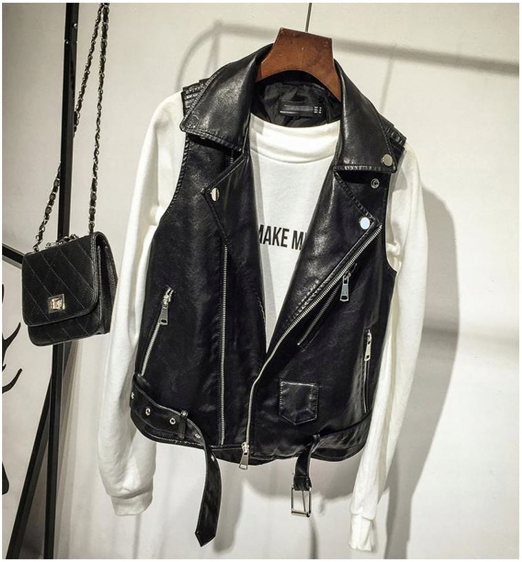Stylowa kamizelka damska skórzana czarna modna