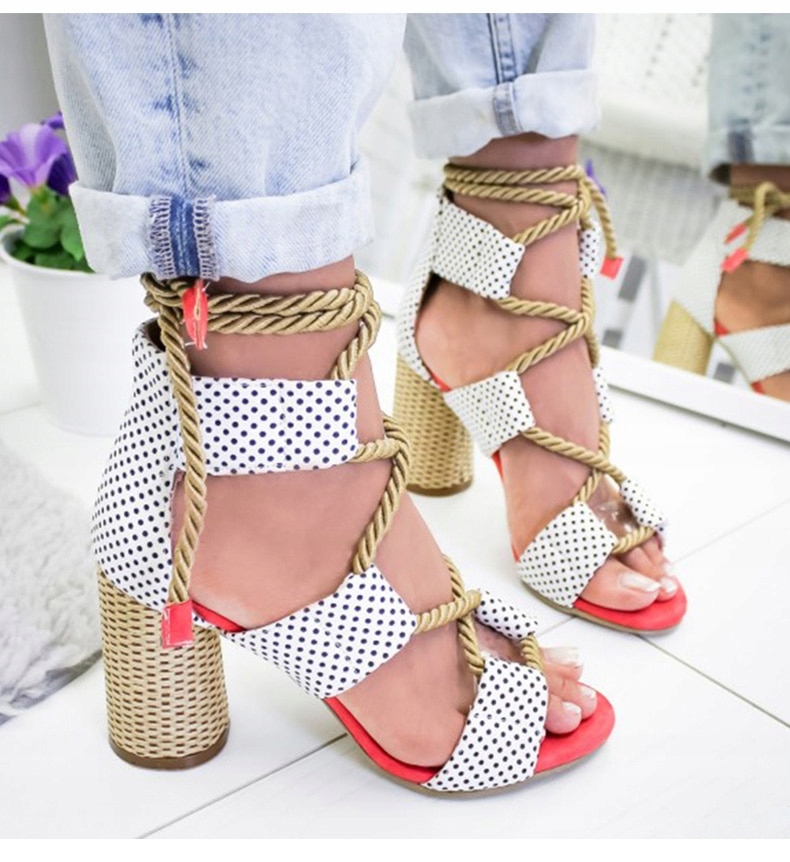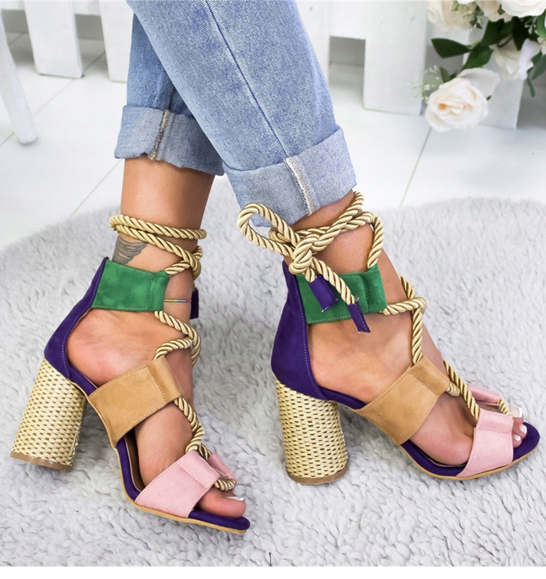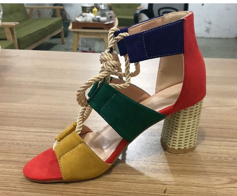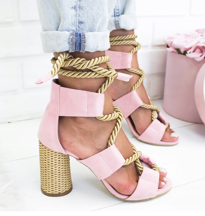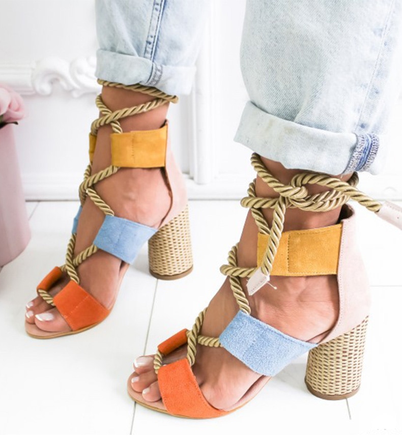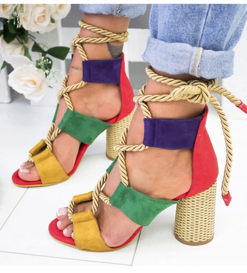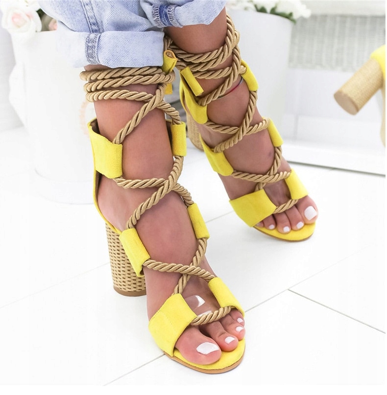 Wiązane sandałki sandały kolorowe na lato obcas słupek na wesele 35 - 43